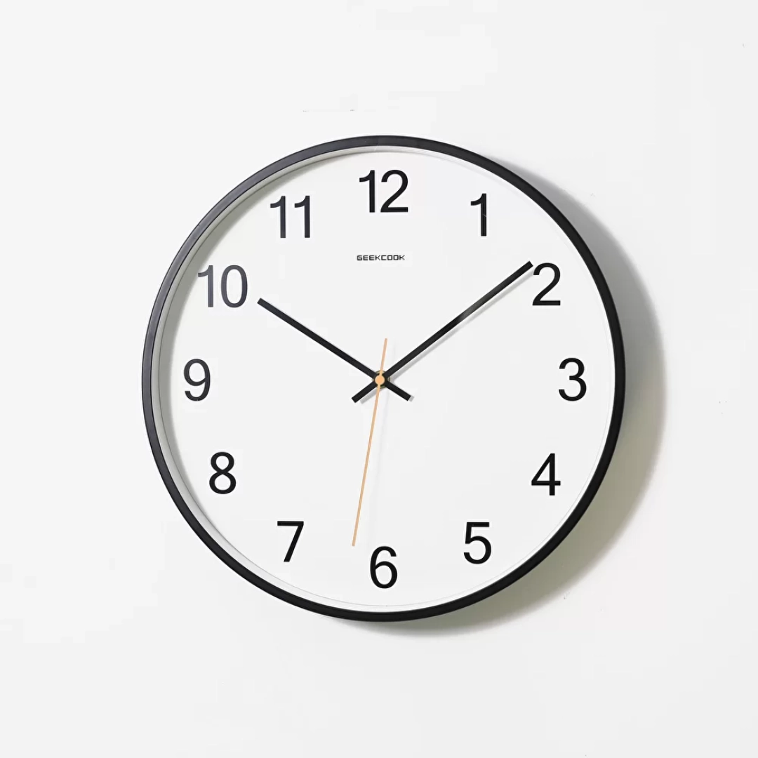 Home decor wall clock. White clock face made from recycled plastic. This round shape wall clock features classic style and perfectly fits into any home or office.